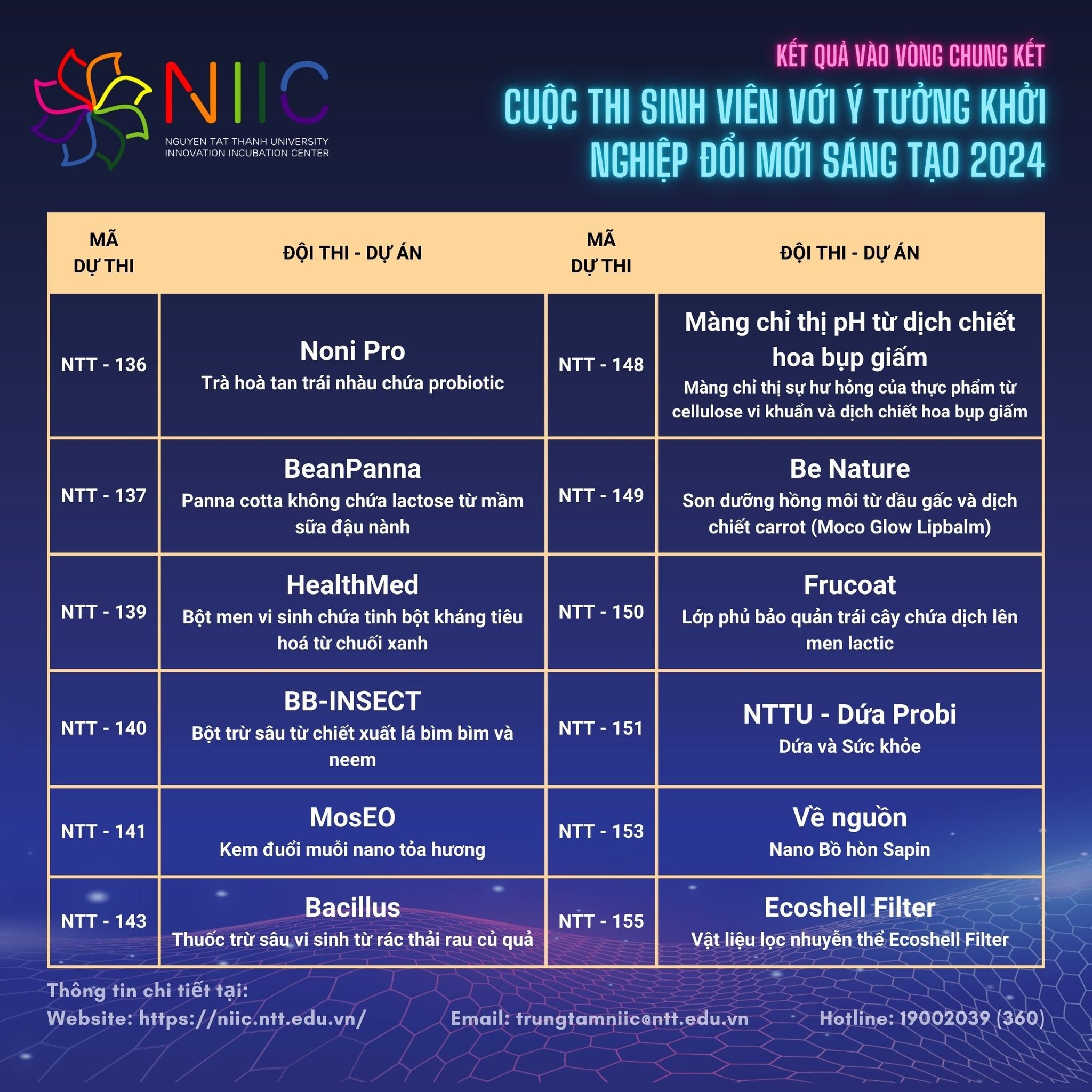 Sau 8 ngày làm việc không ngừng nghỉ của Ban tổ chức và Ban giám khảo, trải qua quy trình chấm điểm nghiêm ngặt, đọc kĩ từng bài thuyết minh và gặp gỡ các đội thi để đưa ra kết quả chính xác nhất. Cuối cùng đã tìm ra 72 dự án xuất sắc phù hợp nhất với các tiêu chí của cuộc thi. Trong đó, Khoa Khoa học Ứng dụng và Công nghệ có 12/22 đội thi – dự án đã xuất sắc lọt vào vòng chung kết.