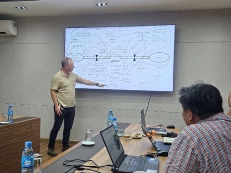 Hình 3. GS. TS. Paul Kemp đúc kết lại những nội dung công việc chính cần thực hiện để hướng đến một giải pháp tổng thể tiềm năng giải quyết các vấn đề của ngành nuôi trồng thủy sản tại Việt nam.
