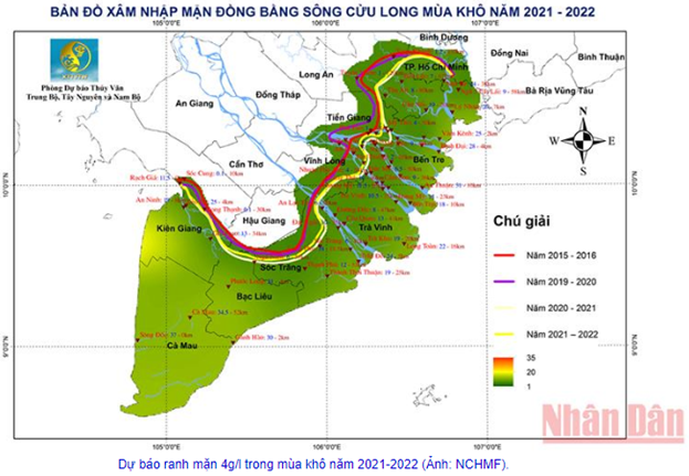 Trong những năm gần đây, diễn biến mặn trong khu vực Đồng bằng Sông Cửu Long diễn ra khá phức tạp. Độ mặn xâm nhập sâu vào đất liền thường diễn ra vào các tháng cao điểm mùa khô (tháng 2 đến tháng 4) và mức độ xâm nhập mặn thường liên quan đến thủy triều ở Biển Đông và/ hoặc do lưu lượng dòng chảy thấp từ thượng nguồn Sông Mê Kông. Ngoài ra lượng mưa giảm ở thời điểm trước mùa khô cũng được xem là một trong những yếu tố gây tác động đến mức độ xâm nhập mặn. Xâm nhập mặn gây ra những hậu quả hết sức nặng nề, ảnh hưởng đến đời sống sinh hoạt, sản xuất của cả vùng ĐBSCL. Đặc biệt, cuối năm 2015 và những tháng đầu năm 2016, diễn biến xâm nhập mặn tại ĐBSCL được đánh giá nặng nề nhất trong 100 năm qua. Từ năm 2016, tình trạng xâm nhập mặn ở Việt Nam đã diễn ra hết sức phức tạp. Việc này dẫn đến nhiều bất cập trong việc cơ cấu và sử dụng nguồn nước cho công tác thủy lợi, nông nghiệp cũng như trong đời sống hàng ngày. Xâm nhập mặn gây ra những hậu quả hết sức nặng nề, ảnh hưởng đến đời sống sinh hoạt, sản xuất của cả vùng ĐBSCL.