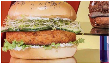 Công ty Terramino Foods (San Francisco) đã phát triển một quy trình để phát triển các loại tảo có thể biến thành một chiếc bánh burger cá hồi. Bánh có mùi vị, ngoại hình và mùi giống như cá thật. Thực chất việc bổ sung tảo và các thành phần có nguồn gốc thực vật khác đã làm cho bánh burger có mùi vị tương tự như cá hồi. Với vấn đề ngày càng gia tăng của việc đánh bắt quá mức, cũng như sự tích tụ của các chất ô nhiễm như thủy ngân và vi nhựa trong cá, hải sản, sản phẩm làm từ tảo của Terramino có thể đóng vai trò là một loại thực phẩm ‘giả hải sản’ bền vững.