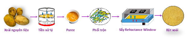 Xoài là một loại trái cây giàu giá trị dinh dưỡng và hương vị thơm ngon ngọt đặc trưng. Xoài thuộc vào nhóm trái cây được tiêu thụ với sản lượng lớn trên thế giới và ở Việt Nam. Tuy nhiên, xoài chủ yếu được tiêu thụ ở dạng tươi, điều này làm giảm giá trị kinh tế của xoài do sự tổn thất lớn sau thu hoạch, phụ thuộc nhiều vào điều kiện xã hội. Sản phẩm bột xoài là một sản phẩm có giá trị cao về mặc sử dụng và kinh tế vì dễ sử dụng, dễ bảo quản, dễ vận chuyển, thuận tiện đóng gói, hạn sử dụng dài. Tuy nhiên do đặc điểm xoài chứa hàm lượng đường cao dẫn đến khó thoát ẩm trong quá trình sấy. Việc áp dụng những kỹ thuật sấy hiện đại ngoài việc giữ chất lượng tốt cho sản phẩm còn có tác dụng hiệu quả trong việc sử dụng nguồn năng lượng, thoát ẩm hiệu quả trong thời gian ngắn mang đến giá trị kinh tế cho sản phẩm.