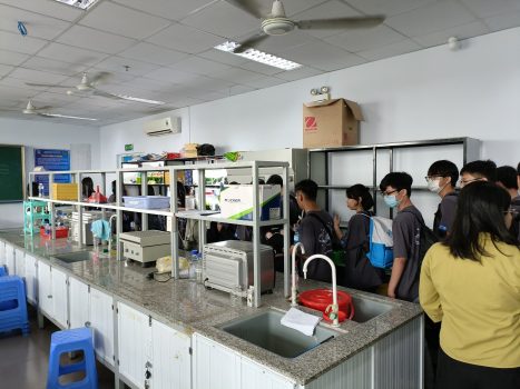 Một số hình ảnh học sinh tham quan hệ thống phòng thí nghiệm của Khoa Kỹ thuật Thực phẩm và Môi trường:
